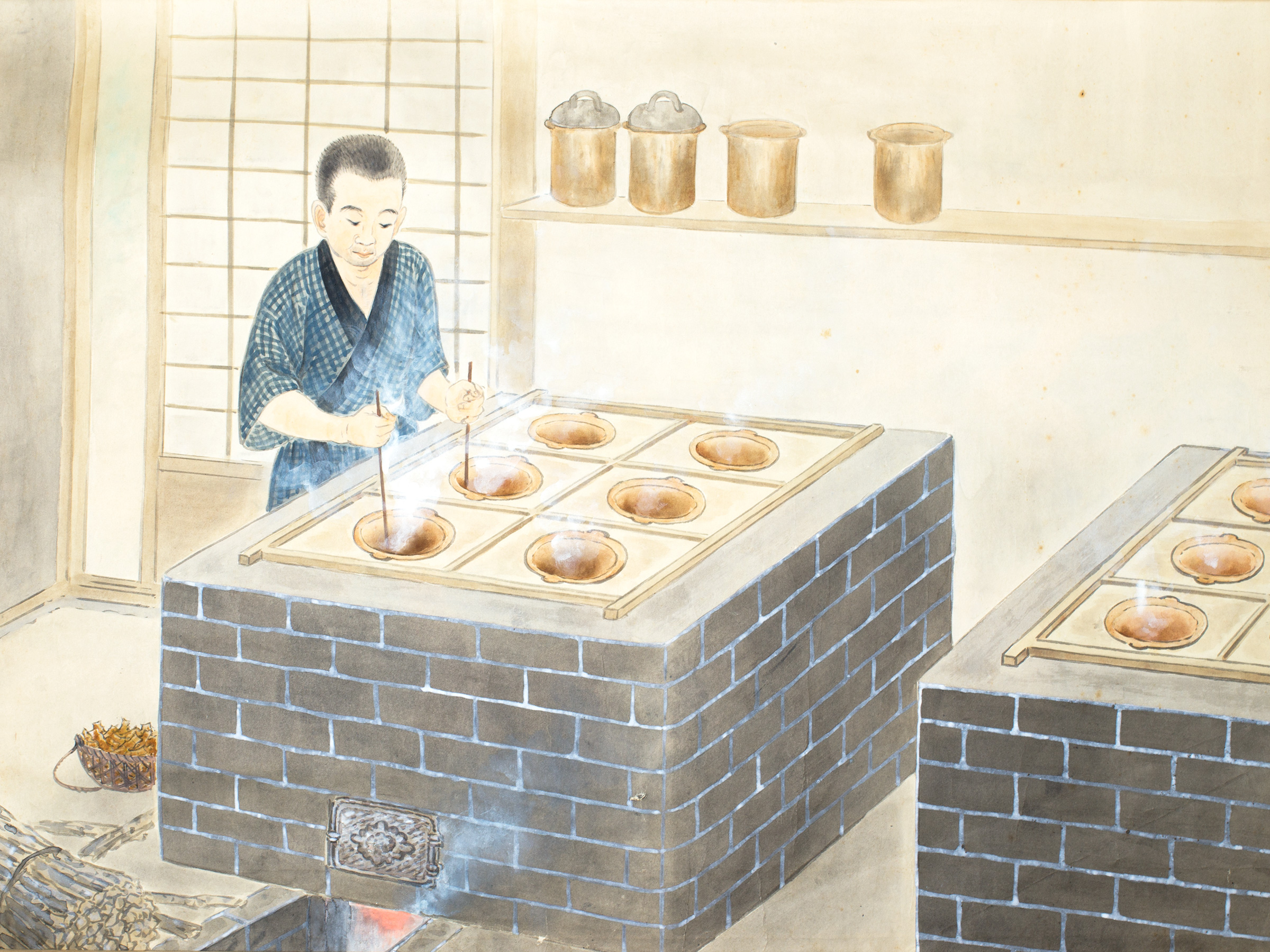墨は気温が高く湿気の多い夏場は膠がくさりやすくなり、墨づくりには適さないので、墨づくりは毎年10月中旬から翌年4月下旬までの寒期に行ないます。