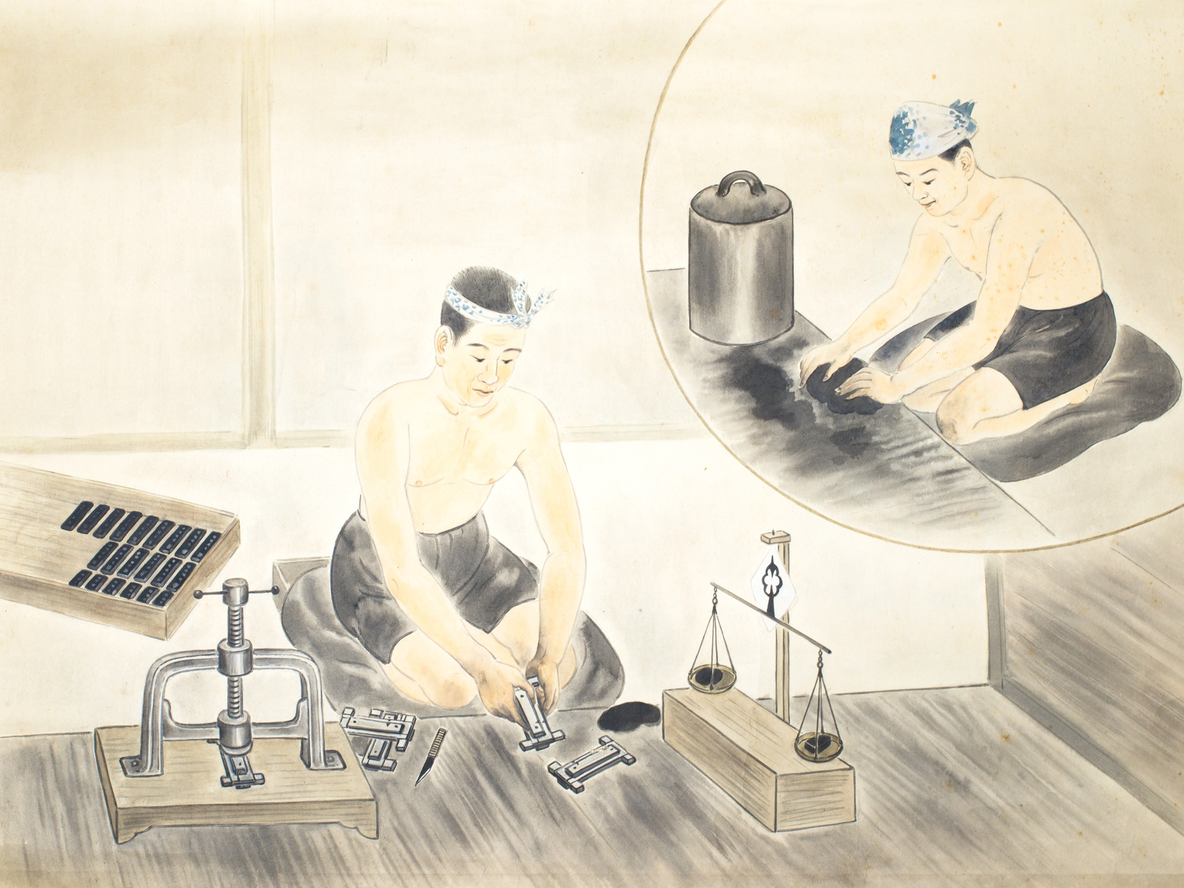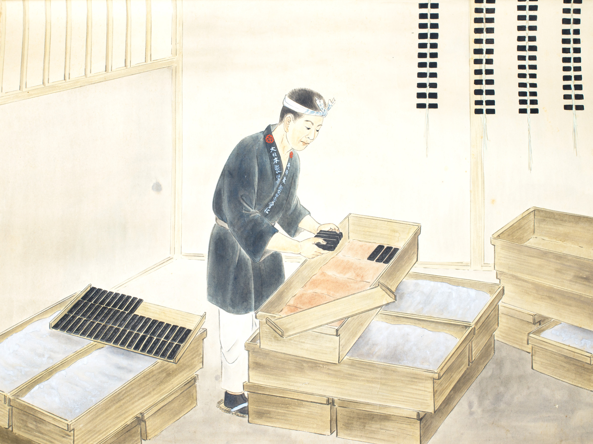 Sumi making of Nihonseiboku明治時代の中期に坂倉文五郎が、奈良の地に於いて坂倉文賞堂の屋号で製墨業を創業し、現在までに様々な墨を製造してまいりました。