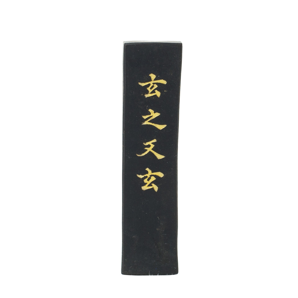 煤は、黒々とした墨の色を示し、膠は紙や木に書かれた煤を定着させる働きをし、香料は膠のにおいを消し、清い香りをもって書く人の気持ちをやわらげる役割があります。
